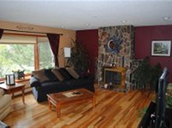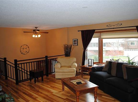 Home is located in a blue ribbon neighborhood. Walking distance to elementary, middle school and high school. Short bike ride to parks. Owners installed hickory flooring in living room, dining area, entry stairway and hallway, entry foyer is marble tile, travertine tile along with slate mosaic in office area and garage entry. Home has a large eat in kitchen with center island, formal dining area,bay window in living room, master bedroom is large with bath, wood burning fireplace in living room, pellet stove in lower level, central air on upper level, RV parking, plus concrete pad for hot tub. Garage is oversized and finished in cedar. Book cases in lower level stay, three zone hot water heat, sliders to large deck. Back yard is fenced includes rv parking and kids swing and play area. Owners are currently in the process of repairing and painting deck along with a few paint touch ups on the main body of the home. Owners have bought another home and can give a quick possession.