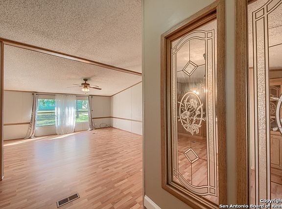 Very well maintained manufactured home on a beautifully treed half acre lot!! 3 bedroom 2 bathroom with a split/open floor plan!! Large eat in kitchen with gas cooking, plenty of counter space and refrigerator conveys. Landscaped front yard, fully fenced, front/side porches and covered carport with metal roof. Also has FHA approved foundation (retrofit). Washer and dryer convey. East Central School District and conveniently located to everything you want and need!!