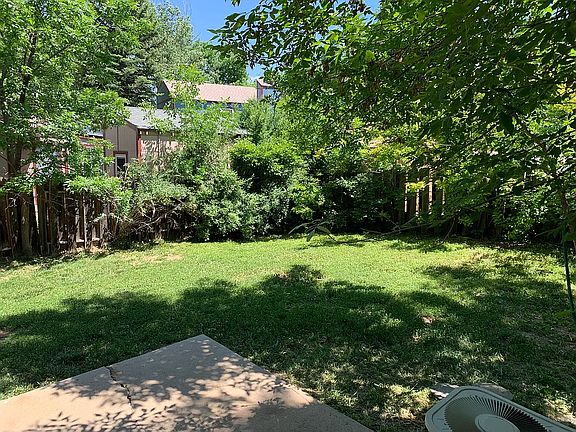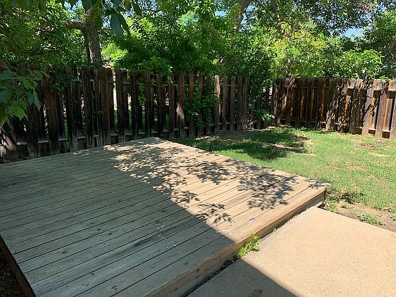 Mature treesFenced yardWood patio areaCorner lotSmall garden area