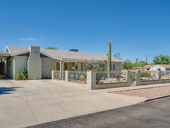 Motivated Seller, Ranch-style home on a corner lot w/unique features. Boasting 3 bedrooms, 2.5 bathrooms, and dining area. Master bedroom attached to a big private heated/cooled room. Updated kitchen w/custom Hickory cabinets, Chefs Pantry & granite counters, dishwasher, W/D, NEW SS refrigerator, and stove! Updated vanities & countertops, HVAC, water heater, Fresh paint and Pella double pane windows with blinds. Covered back patio has Surround-Sound System & wet bar. Built-in Ramada, detached 28'x30'x10'ft Garage/workshop with air compressor, rolling crane etc. accessible from the back. Big RV space w/full hookups & covered parking spaces all behind electric gate w/remote Only 3 miles from U of A, Hospitals & Close to schools, shopping, parks, golf and much more!