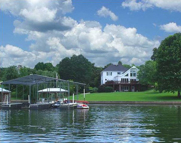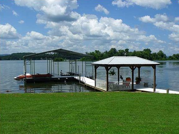 This custom built 4 bedroom, 4.5 bath home has a lot to offer. Set on approximately 2 acre site gently sloping to the banks of the Tennessee river, the home features views of the river and the mountains across the river from nearly every room. From the breakfast table, see sailboats drift by, ducks, geese, cranes, eagles, osprey and other wildlife just a few yards away. The views continue in the spacious, open living room, with wrap around windows beneath a vaulted ceiling, and from every bedroom with the lone exception of the bonus room, which adjoins a spacious open loft area with its own spectacular views. For entertaining, the kitchen provides abundant resources. With two ovens, a wide wrap-around counter top with a wet-bar sink, a modern french door refrigerator, an island for prep work, plentiful storage - this kitchen has it all. And to top it off, the counters are covered in beautiful, functional, and durable tile. Just off the kitchen, the dining room offers space and flexibility for dinner parties of 10 or more guests, and the built-in shelving will provide a stunning showcase for fine serving pieces or collectibles. For an additional staging area for parties and family gatherings, a general utility room connects to the dining space. This room offers considerable storage, room for a second refrigerator or freezer, and contains the full size laundry machines for the home. The master suite is located on the main floor, convenient to the kitchen, living room, laundry, and two car garage. The suite is truly special, with space to accommodate comfortable, king-size furniture as well as a sitting area. Behind a clever three paneled mirror is hidden a generous his & her's walk-in closet. And the en-suite Master Bath features separate vanities, a deep soaking tub (with views to the lake), and a walk-in tiled shower. Completing this main living level is a spacious deck that wraps around the entire river side of the home, from the kitchen door access on the south (with a gas line ready for grilling), all the way around to the master suite, where a 4 person whirlpool is tucked into a private nook. The deck, with ever-changing panoramic views of the river and mountains to the west, offers multiple options for outdoor dining and entertaining, and easy access from the kitchen, breakfast area, living room, and master suite. Up an open, hardwood flight of stairs are three more spacious bedrooms, each with unique and interesting character. One bedroom offers a full and private en suite bath, two full sized reach-in closets, and three windows with views to the lake. A second bedroom offers views of the lake and the verdant front lawn of the home. This bedroom has a private vanity, and shares a Jack & Jill full bathroom with the third bedroom, which also has a private vanity area. The third bedroom is another large format space, easily accommodating a king bedroom furniture suite as well as a sitting area.This room features both a reach-in closet and a large walk-in storage room. This room also offers access to sizable storage areas behind finished room walls. All of the upstairs bedrooms open onto the loft, which provides a versatile and multifunctional. space, all while enjoying expansive views to the lake. The foundation for the house is of reinforced concrete poured walls and provides a full basement which is partially finished. Down a flight of stairs from the main floor is an extra wide hall that provides access to the den, another full bathroom, a large storage room / mudroom, and second garage. This garage which is large enough to park two vehicles features a built-in workbench and a custom built material storage rack and offers plenty of additional space for lawn care equipment, etc.. Just out the doors from this lower level is a wrap-around patio that leads on to the gently sloping lawn and finally to the lake.
