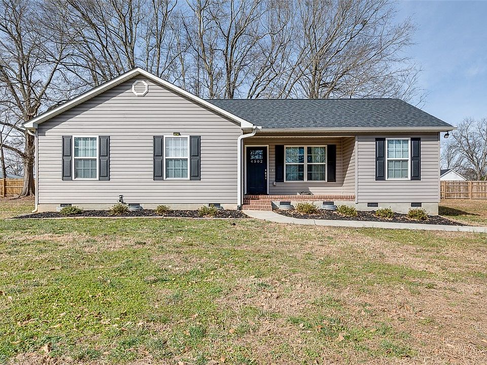 Rocking chair front porch one level home in a rural setting while just miles from the city. Three bedroom, two bath with split floor plan. Large great room with vaulted ceiling. Spacious kitchen with dining area. Large corner lot with partial yard wood fencing for added privacy. Enjoy grilling out on the private deck on back of home while enjoying the evening. USDA Eligible. (Seller in process of moving)