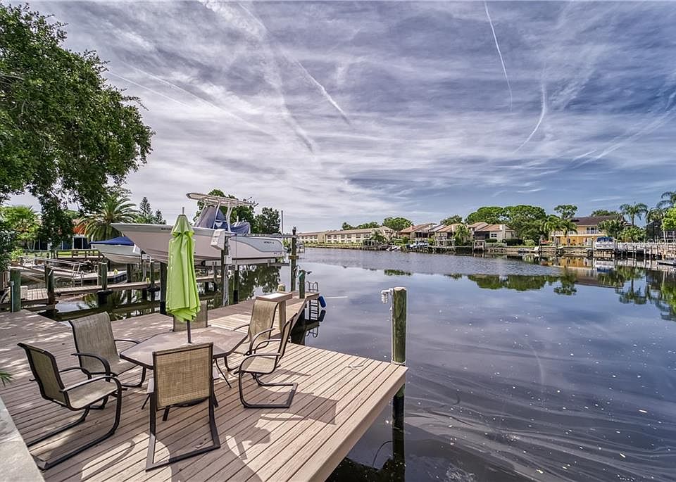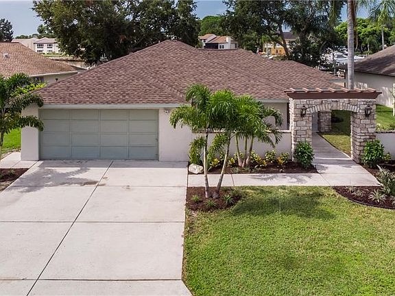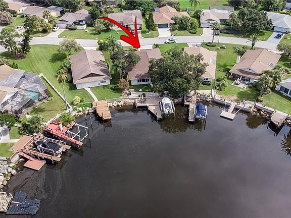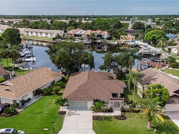 PRICE IMPROVEMENT TO OWN this beautiful WATERFRONT home! Live at first sight and MOVE-IN READY! This amazing home has been completely remodeled inside and out and features NEW ROOF, 3 bedrooms, 3 baths (each bedroom has its own bath) 2300sqft, 2 car garage, NEW lush tropical landscaping, 7500lb GOLDEN BOAT LIFT, Starboard fish station with electric and water, a spacious 700 sqft deck and patio area that's perfect to relax and have coffee in the mornings or for entertaining waterside! Additional upgrades are a NEWLY painted stucco exterior, NEW oversized driveway, sod and irrigation system w/rain sensor. The unique STONE archway frames the entry and elegant double doors lead you into the home! Beautiful 16x16 TRAVERTINE TILE throughout, 5" CROWN, 5" baseboards, NEW A/C duct work and GRANITE and travertine in all baths. For the CHEF there's an GORGEOUS GOURMET KITCHEN WITH ISLAND, awesome bar seating, under cabinet LED lighting with dimmer, LED pendant light fixtures, WINE refrigerator, Kenmore Pro STAINLESS STEEL DOUBLE OVEN, refrigerator, Viking Microwave, LG Silent dishwasher, and the star of the show... the GAS COOKTOP with 6 burners, pot filler faucet stainless hood w/filters- LED light and heat lamps with AND tumbled travertine backsplash! It's a stunner!! All day you can admire the peaceful water view through the picture frame windows ...you'll never want to leave! JUST MINUTES TO THE GULF this is the home of your dreams.... HURRY before its gone!