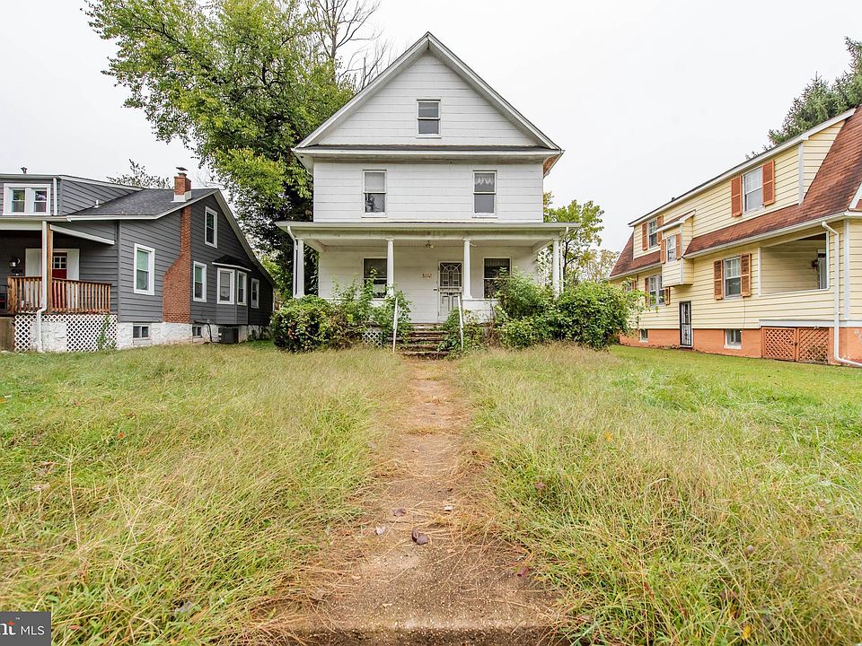Big and bold would best describe this grand old Gwynn Oak colonial. That classic Baltimore pride and flair is evident throughout. Large rooms on all 3 levels with original hardwood, high ceilings and rich wood trim. Ample large windows provide tons of natural light in every room and the kitchen shines with it's spacious layout and separate pantry. The real bonus here is that the floor plan needs no modifications! Traditional design still applies with modern living. This one could really shine once finished and overall it won't require a monsterous rehab. It's bones in and out are rock solid. Speaking of outside, there is a full width covered front porch, a wrap around deck at the rear with parking. All sitting on a huge lot with a deep setback from the road. Bring your sketchbook and ideas and take note of all of what's going on in the neighborhood. Property is winterized. Buyer to pay to winterize and re winterize for inspections.