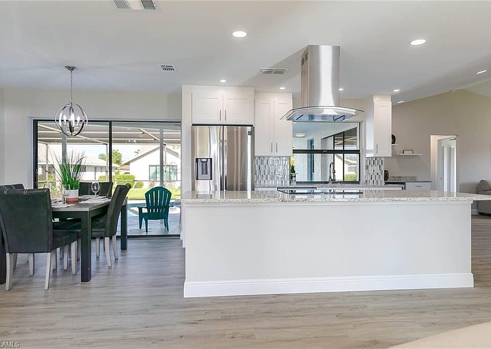New Renovation of this 3 bed 3 bath pool home with million dollar views of the Caloosahatchee River. Only home in SE Cape Coral with direct views of the river and without being on the river. Split floor plan with master bed and bath on one end of the home and the opposite side has 2 additional bedrooms and 2 baths. Everything is new or updated. Re-plaster and tiled pool, new open concept kitchen with white shaker cabinets, new granite, new stainless-steel appliances, new luxury vinyl flooring and tile throughout the home. Also, there is all new lighting, new doors, trim and all new baths with tile showers and vanities with granite. Great pool deck for entertaining family and friends. New landscaping, sod, and all new irrigation system. The mechanicals were also updated with new AC, complete re-pipe of the home and updated wiring throughout. Nothing to do but move in.