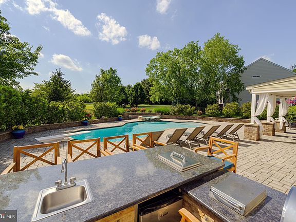 Welcome to 4502 Scenic View Circle, a luxurious five bedroom brick home nestled on a cul-de-sac street in the coveted Durham Ridge neighborhood. Upon arrival, the pride of ownership is evident as you walk towards the front door admiring the wonderful landscaping. As you enter into the inviting 2-story foyer, you will be greeted by hardwood floors that grace the first floor, leading you to the gourmet kitchen. A true chefs dream featuring a 10-foot island with a built-in wine fridge and bar seating, along with an oversized gas range and refrigerator that are nestled in a stone wall giving a rustic elegance to the space. Custom maple cabinets, with pantry and stainless appliances, including a microwave drawer, add luxury to this desirable kitchen. Windows to the rear yard stream light into the room. The adjacent breakfast area, adorned with sliding glass doors and plantation shutters, seamlessly connects to the backyard oasis. Stepping outside, the backyard is a true paradise, showcasing an in-ground heated pool with a hot tub and waterfall, a covered patio with a retractable awning, a fire pit area, and an outdoor kitchen, all enclosed by wrought iron fencing and accentuated by extensive hard-scaping and beautiful landscaping. Also noteworthy are the picturesque views and sensational sunsets that you will see behind the home, as you listen to the Sonos Surround Sound System that streams through the outdoor and indoor spaces for further enjoyment. The family room, adorned with a gas fireplace and plush carpeting, offers a cozy retreat with picturesque views of the outdoor haven. The dining room, bathed in natural light, showcases architectural trim on all four walls, while the front office, with double glass doors, provides a private and serene workspace. Upstairs, the primary luxury bedroom awaits, boasting vaulted ceilings, plantation shutters, and walk-in closet with custom organizers. The en-suite bath will not disappoint. As you enter through the 15 pane glass sliding pocket doors from the primary bedroom area, you will encounter double vanity sinks, a spa-like walk-in shower/steam shower and a private water closet, showing off the suite's elegance and sophistication. Four additional bedrooms offer ceiling fans and delightful views of the lush property and a newly renovated hall bath complete the second level of this home. The newly renovated basement, featuring luxury vinyl flooring and fresh paint, presents endless possibilities with areas for a workout space, game room, and more. The thoughtful design includes a section with built-in lower cabinets with counter space and a separate room for food prep and serving options. Indulge in the ultimate luxury living experience where every detail has been meticulously curated to create a captivating retreat that feels like a year-round vacation.