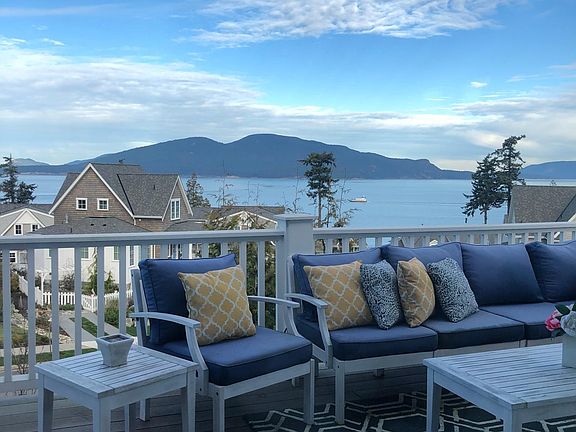 Spectacular views all the way from Cypress Island to Lummi, this 2,209 Sf home has custom finishes throughout. 3 beds, 2.5 bath home. Welcoming covered front porch and full-width rear deck with unbelievable views. Bright, sunny open concept. Kitchen w/ black granite tops, hardwood floors, eating area. Vaulted ceiling in the LR and DR with French doors. Master bedroom on Main with deck to the view. Downstairs are 2 bedrooms or office with full bath. Beautifully landscaped w/sprinkler. Must See! Available in May