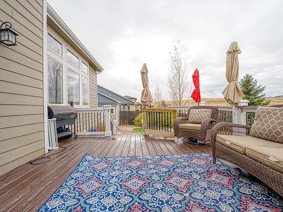 An impeccable home with vaulted ceilings, extremely large windows offering amazing views and a very open floor on the main level for family/friends! While cooking in the kitchen you can enjoy the massive rock fireplace with a beautiful mantle that beams with sunlight in the living room on cold winter days! A nice large mudroom off the garage with plenty of room for your winter gear. A master with vaulted ceilings, views of the Big Horns, walk in closet and a 5 piece master, an incredible walk in tiled shower, soaking tub and two separate sinks PLUS corner linen closet! A finished basement with a wet bar for entertaining or just enjoy relaxing on the weekends. A maintenance free deck overlooking an open field, landscaped yard, RV parking(50amp service) and an oversized 3 car garage!