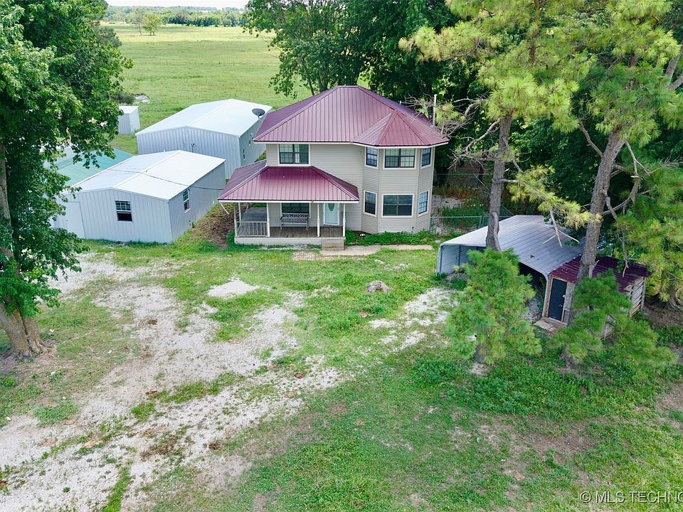 Limitless potential with this fully remodeled 2-story home on 10 acres of fully fenced land. Built in 1990, this 3-bedroom, 2-bathroom home was remodeled in 2021. Spacious layout with plenty of natural light, and cozy living spaces. Beyond the main home, this property offers six 30' x 100' metal buildings, formerly used as a grow facility (equipment not included), providing endless possibilities for storage, agriculture, or business ventures. Additionally, the bunkhouse features 8 bedrooms, 2 bathrooms, a full kitchen, and a common area, making it ideal for guests, employees, or rental opportunities. With a pond and fully fenced and a great location this property has it all!