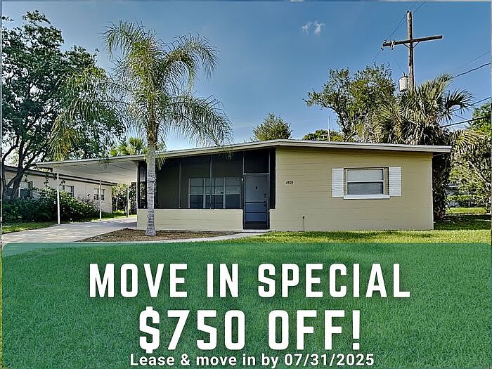 Welcome to 4503 Arch St, a cozy 3-bedroom, 1-bathroom home offering 1,200 sq ft of comfortable living space. This inviting residence features a screened-in front porch, perfect for enjoying the Florida breeze, and a carport for convenient parking. Inside, you'll find a bright and functional layout with plenty of space to make your own. Situated in a great location near shopping, dining, schools, and major roadways, this home offers both comfort and accessibility. Dont miss out on this leasing opportunityschedule a viewing today! All Bridge Homes residents are automatically enrolled in our Resident Benefits Package (RBP), to ensure the best leasing experience. This property allows self guided viewing without an appointment. Contact for details.