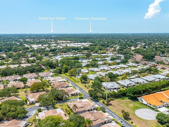 RARE opportunity in active 55+, pet friendly community! This 3 Bedroom 2 bath maintenance free villa with attached 2 car garage is just under 2,000 Sq Ft of air conditioned living space. This corner lot villa is situated in the center of the complex and just steps away from the community pool. As you enter, the foyer welcomes you to a well thought out split floor plan providing amp spaces between owners and guests. You will notice the large dining Living Room combo with an almost floor to ceiling picturesque window. As you walk towards the family room your eyes will immediately be drawn to the natural stone fireplace that takes up an entire section of a wall leading to the vaulted ceilings with skylights allowing the daylight to brighten this spacious room. The large master suite has 2 sliding glass doors, one that leads to the Florida room where you can relax with a morning cup of coffee or an evening glass of wine and the other to the sizable private courtyard providing outdoor living that is accessible from both the master and 2nd bedroom. The kitchen is centrally located providing access and views to all the entertaining rooms yet also access to the laundry room and 2 car garage. Having plenty of cabinets, counter space with an eat in area and a tray ceiling. Center Gate Estates Section III is shared by 42 two- and three-bedroom villas. Its a socially active community with caring neighbors. The amenities include a pool, screened common area and mature landscaping. The community has a convent location with close proximity to excellent medical facilities, Doctors Hospital, golf courses, shopping, dining, just miles to the cultural life of Sarasota's downtown and the world famous #1 Siesta Key beach.