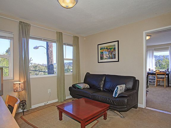Upper unit in corner Duplex with deck and garden at unit level(on hill) great views and windows all around. Freshly upgraded, painted and brand new carpet. Large bedroom, small bedroom, large closet and small office, living room and kitchen. Owner pays for trash, other utilities on renters. Laundry in unit. NO smoking First last and one month deposit. Please fill Zillow application, enquiries by text or e-mail.