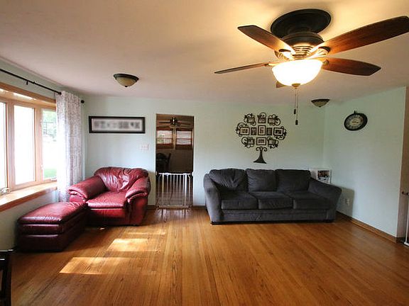 Very clean 4 bedroom, 2 bath brick ranch. The spacious eat in kitchen is fully applianced with ceramic tile flooring. The beautiful bay window in the living room overlooks deck/porch on the front of the home. The finished basement includes a recreation room that is complete with a pool table and shuffle board table. Basement den could be converted to a 5th bedroom with addition of an egress window. Updates include, New Roof 2017, Water heater 2018, Washer and Dryer 2019.