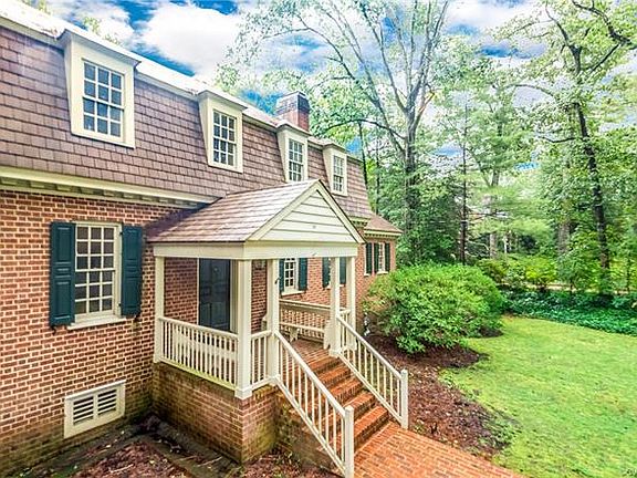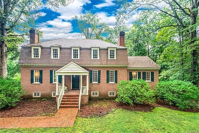 Built to replicate the residence of John Adams this wonderful home atop Shirley Road is within walking distance of the James River. With three bedrooms and 3-½ baths this home has a true wide center hall and attention to turn of the century details rarely found in a home built today. From the 9 ft 8 in ceilings on the first floor to the curated light fixtures and the reclaimed wide pine flooring, the bones of this home and grounds are amazing. The large formal Living Room with fireplace has gorgeous windows and lends itself to entertaining or comfortable family living. The large formal Dining Room opens to the charming eat-in kitchen with an oversized fireplace and a door to the steps to one of the many back terraces. Off of the kitchen is a cozy study with a fireplace and built-in bookshelves. This home has a huge finished walk-out basement, a large lovely landscaped lot and beautiful terraced brick patios. This home has attracive brick, a new synthetic shake roof, and was built with the highest standard.