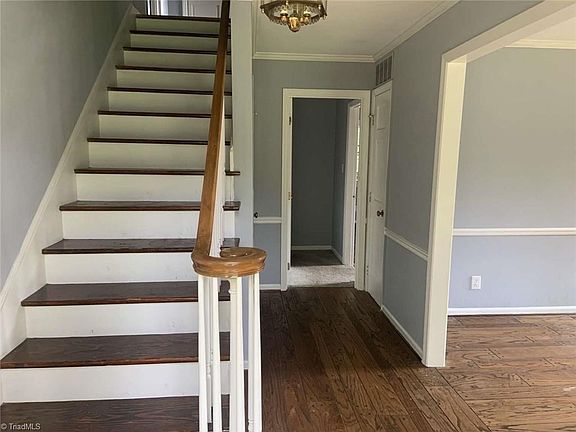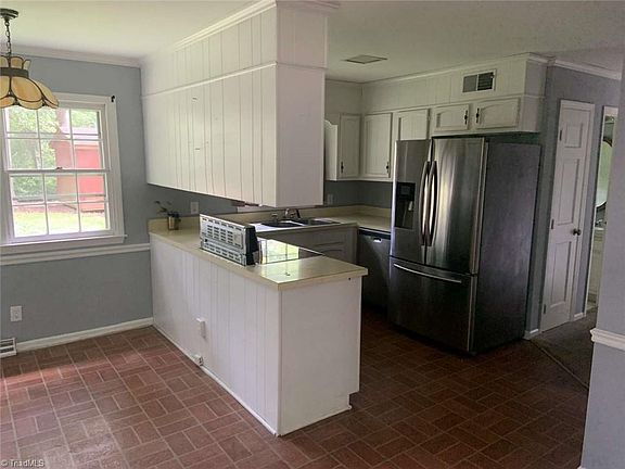 Very nice 4 sided brick Cape style home with large fenced yard in wonderful convenient location. Located just outside city limits for low county takes and no water bill! Large bedrooms with multiple closets in each room. Downstairs features living room, family room, eat in kitchen, bedroom and hall bath. Upstairs has 2 great size bedrooms and a bath. Home has updated HVAC and is move in ready. Fenced yard with large wired utility building included! yard extends past fence. Seller is licensed NC Real Estate Broker