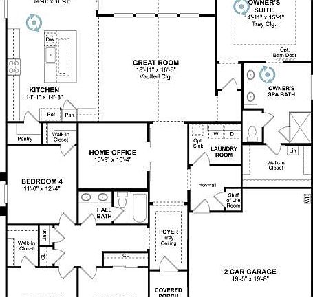 The Barcelona offers: Spacious great room with vaulted ceiling. Open kitchen with large island and walk-in pantry. Tranquil owner's suite with dual vanity sinks in owner's spa bath. Private home office makes working from home easy. Included oversized covered patio perfect for backyard barbecues. Versatile HovHall provides extra storage space.