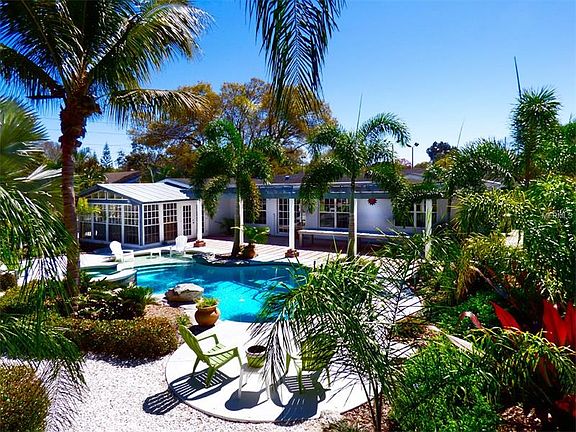 PRICE REDUCED! Appraisal completed July 2016 at $420,000. Own your own slice of heaven, just 12 minutes from the gulf beaches, directly opposite from Bradenton Country Club golf course and a 2 minute walk to the clubhouse. Pull into the brick-paved, circular driveway and the covered walkway leads you to the welcoming front portico entrance. Once inside, the generously-sized foyer leads you left to the dining room and your first glimpse through the rear windows of your tropical backyard paradise. To the left are 2 large bedrooms and 2 full baths. The sunny, wide-open floor plan family room offers relaxing pool views, and, to the right, a breakfast bar and eat-in kitchen with new stainless appliances and built-in desk area. Double doors lead to the master retreat. Master bath includes dual sinks, spa tub and separate shower. 4th bedroom conveniently located off the master bath is perfect for a nursery or home office. Inside utility features front loading washer and dryer and time-saving laundry system. No less than 30 specimen palm trees, professionally landscaped pool and elevated spa, fire pit, and 40' lanai with a custom-made 16' table that comfortably seats 20, round out your backyard entertainment oasis. Centrally located, close to restaurants, shopping and banking.