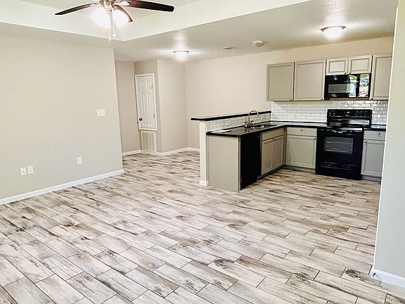 This 3 bedroom 2 bathroom duplex has a sleek design sure to make your family & friends jealous. This home is gorgeous. All ceramic tile floors throughout with black granite countertops & white ceramic backsplash. All kitchen appliances refrigerator, range, dishware & microwave/venthood included. Pantry in kitchen & XL coat/utility closet in the hallway. Living room has tray ceiling with ceiling fan. The main bedroom has a HUGE walk in closet & private en-suite bathroom with a door leading to secluded backyard. Covered porches in both front & back. Oversized yard all around. This home also has an attached garage with additional driveway parking as well. This home is in LCM school district. You will surely fall in love with this still like brand new home! Leases for $1495 per month. Equal Housing Opportunity Resident responsible for all utilities.