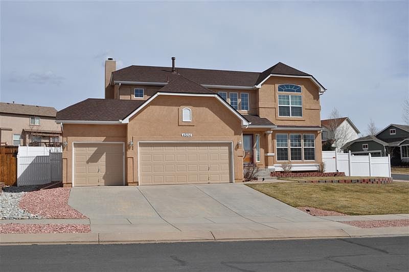 Beautiful Two story Stucco home with 3 beds, 3 baths and a 3 car garage situated on a large corner lot. Gleaming hardwood floors from the entry through the breakfast nook and kitchen. All the kitchen appliances stay including the side by side refrigerator. Soaring ceilings from the open Great Room with a wood burning fireplace and ceiling fan. Formal living and dining are perfect for entertaining. The Master suite has a vaulted ceiling and luxurious private 5 piece bath with jetted tub and cedar lined walk in closet. Two additional upper bedrooms with full bath. The unfinished basement allows for lots of room to grow. An immaculatly landscape backyard with 2 stamped concrete patios are perfect for summer time BBQ's and a no maintenance vinyl fence all the way around the back yard. Additional features include new vinyl windows, air filtration system, new water heater, securty system, ceiling fans in the bedrooms, storm door at front and rear doors, newly painted interior, new door hardware (no brass),garage service doo r, 2"faux wood blinds, double pantry, crown moulding and so much more. Welcome home! Neighborhood Description Close to shoppings, near Peterson Air Force Base and Air Force Base, close to schools, parks and trails. Very centraly located.
