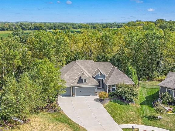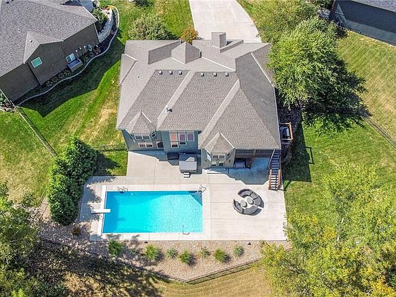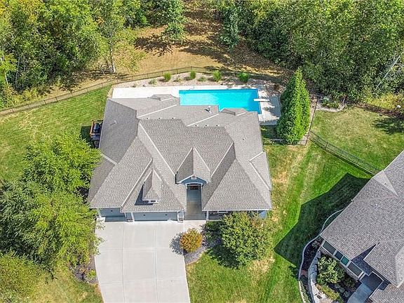 FALL IN LOVE WITH THIS GEORGEOUS 4-bedroom 3.5 bath New Mark Homes Reverse 1.5 Story, Hampton V home in Riverview subdivision. As you step inside, you’re greeted by an inviting open floor plan encompassing floor to ceiling windows flooding the space with natural light that reveals picturesque views of your private treed lot. Main level living is convenient for owners with master, laundry, kitchen, great room, office and additional bedroom for guests/office. The custom kitchen with oversized island is perfect for entertaining! Finishes include granite, stainless steel appliances, hardwoods and stone fireplace. Enjoy the mornings sitting on your screened- in porch. The three car EXPANDED garage includes a 9 ft. wide 3rd car door AND suspended garage floor adding additional storage in the basement. DOUBLE AND SINGLE GARAGE DOORS BEING REPLACED. NEW ROOF AND GUTTERS OCTOBER 2024! The lower level sets the stage for entertainment, offering a spacious family room, full kitchen, 2 large bedrooms with 1.5 bathrooms and additional washer/dryer area. Walkout lot perfect for entertaining and swimming with friends and family, lounging on the pool deck or relaxing in the hot tub. RETRACTABLE POOL LINER BEING REPLACED. Pool equipment and all pool furniture included. This private oasis offers memories that will last a lifetime. Fantastic location feeding into Award Winning DeSoto Schools in walking distance to Riverview Elementary. THIS HOUSE HAS EVERYTHING!!! Don’t miss your chance to make this one-of-a kind property your own! Back on market no fault of seller.