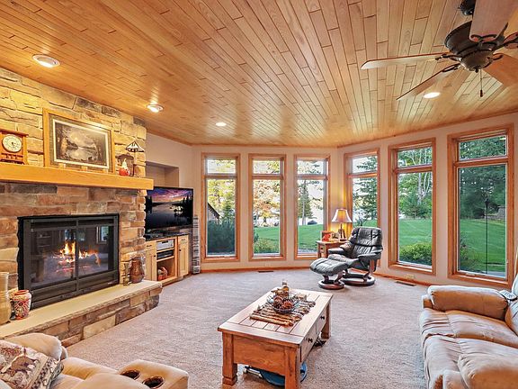 Be in one of the top elite condos on the Eagle River Chain of Lakes w/pier slip. As an end unit located on the ground level, you have a little more peace on your lake-facing deck. This furnished unit is set up w/2 bd & an office which has a view better than the corner office downtown. Enjoy what the high speed internet allows you to-live, work & play in the Northwoods. The large liv rom is warm w/the ash tongue & groove ceiling & handsome & solid stone FP nestled between bookshelves. The din rm & kit are also part of the open concept & view the the manicured lawn & shoreline. You can also brag about the lake views from the master ste which boasts tray ceilings, tile shower & spacious walk-in closet. Unit comes with att gar plus large & tall storage unit. Condo offers an indoor pool, exercise rm, large firepit area & beach area. Grounds cover 7.5 acres & 300' of boat-able, usable, enjoyable, fishable ftg. Don't work all the time, let yourself relax & enjoy the Northwoods-right here.