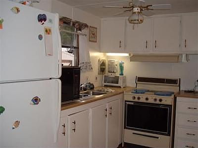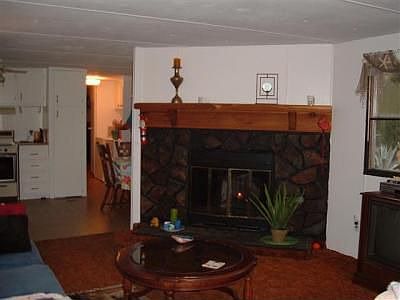 Unique setting last lot next to pond. Level side yard area. Well cared for mobile home that includes wood-burning fireplace. Three utility sheds and canopy for car storage. Fenced yard. Screened porch. Quiet neighborhood.