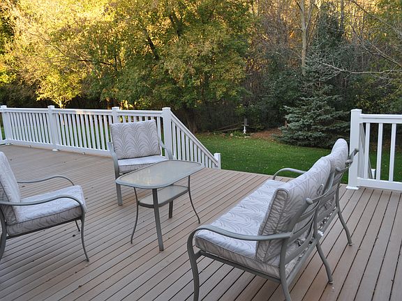 Home Sold By Owner Expansive family friendly executive home at end of culdesac. Features hardwood hickory floors throughout the first floor. Huge kitchen with Cambria counters and stainless appliances. Living room, family room, dining room, first floor laundry and eat in kitchen. 4 bedrooms + 1 one set up as an office. 3 full baths and 2 half baths. 3 car garage with stairs to lower level as well as an overhead door to the backyard. Exposed windows in finished lower level face large private backyard with no view of other houses. Gigantic maintenance free deck + concrete patio to enjoy your privacy or comfortably entertain 50! Lot line Borders 13 acres of WI Public service property filled with wildlife. A mini nature preserve right in the city! Close to I-43 for quick commutes. The other amenities you want: central vac, gas/wood fireplace, 1st floor laundry, white woodwork and raised panel doors, 9' and cathedral ceilings, tons of natural light, low traffic location. Updates include remodeled kitchen, master bath, refinished floors, new roof, landscaping, maintenance free deck, furnace and A/C upgrades.