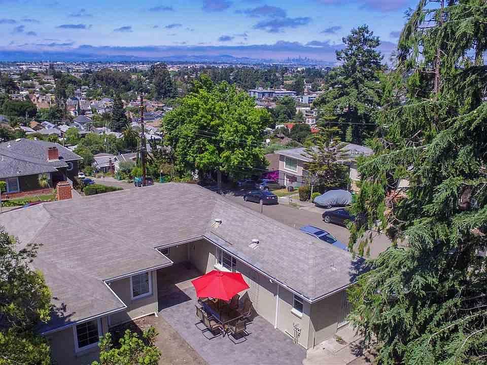 Perched atop a hill on a spacious 7,500 sq ft corner lot, this storybook home has 3 bedrooms and 1 ½ baths. Lovely views of San Francisco, Downtown Oakland and the Bay in the distance greet you every day. This home was built in 1947 and has a vaulted beam ceiling, built-in cabinetry, and hardwood. The backyard is large and private with several trees and plenty of space for your entertaining, gardening, or just taking in the peace and quiet. 1 car attached garage with interior access.