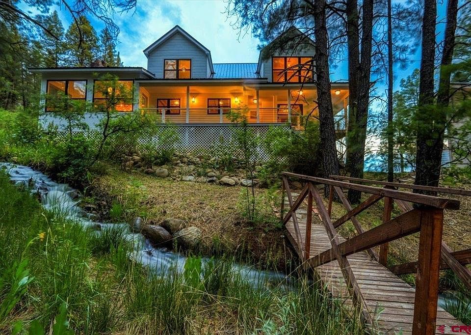 This Mountain Modern home perfect for a primary, secondary, or Short Term Rental. Completely furnished and turn-key! Nestled in the woods is an enchanting retreat located just 4 miles south of Historic Downtown Pagosa Springs. Abundant natural light fills nearly every room of this newly remodeled home. Over 4000 square feet, 4 bedrooms, plus a bonus room, 3.5 baths, a game room, and two office areas, all season porch and more provide ample space for living, leisure, recreation and perfect for the remote worker, hobbyist or maker. The giant primary suite features a sitting area, office, tv and reading area, ensuring a private and quiet escape within the home. Meticulously remodeled in 2017, the house showcases modern bathrooms with subway tile, new appliances, flooring, high-end fixtures, lighting, and finishes. Practical amenities include a large pantry, beautiful cabinets and counters, a spacious laundry room, perfect for shedding the gear after a day recreating in the mountains. Newly installed solar means low utility bills, hot water baseboard heat is perfect for the allergy sensitive with no recirculating air issues. Outside, the property features beautiful outdoor spaces for fire pits and lounging, complimented by a 3-season stream providing the calming sound of running water. Brand new septic system just completed in December 2024. Situated within 30 minutes from Wolf Creek ski area. 10 minutes from groceries, medical facilities, and golf within a 20-minute drive. The location offers both convenience and serenity. Not being located in a subdivision provides ultimate freedom from regulations. This stunning Mountain Modern is ready for a new owner to start their next adventure in the San Juan Mountains. Seller Motivated! Relatively easy to show, call for a viewing appointment, you won't be disappointed.