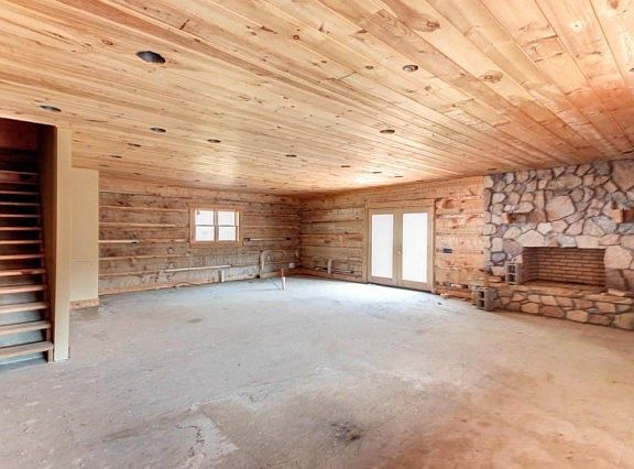 This is one of the most unique properties in Knox Co & located facing House Mtn. State Park. This log mansion is 70-75% complete. Seller has over $750,000 invested .Impressive large rooms, soaring ceilings, hand-hewn beams, Unfinished Pine Floors, most electrical, beautiful ceilings, 3 massive stone fireplaces, a wraparound deck with mtn. views and large enough to entert