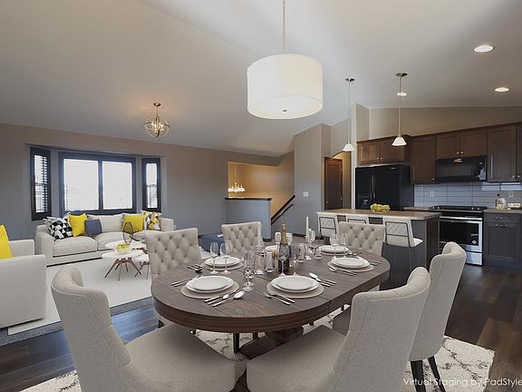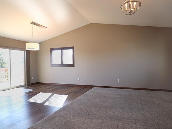 Listed by Suzanne White, 605-390-0137, Keller Williams Realty. Enjoy low-maintenance living near Red Rocks Golf Course. The main floor offers open living space with vaulted ceiling. The beautiful kitchen has custom Alder cabinets, tiled backsplash, Whirlpool appliances, and slow-close drawers. The master bedroom includes an attached bathroom with walk-in closet and dual vanities. The living room and master bedroom lights can be switched to fans. Second bedroom upstairs has been converted to a laundry for easy one-level living, but could easily be switched back. The basement offers an expansive family room, two additional bedrooms, and nice bathroom. Additional laundry hookups are in the utility room. Beautiful custom plantation shutters throughout. Luxury vinyl flooring. Nice storage space under the back deck. HOA covers lawn care (including sprinkler maintenance, water, and fertilization) and snow removal. Buyer & buyer agent to verify all MLS info.