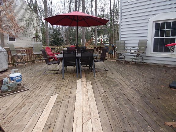 There are certain homes you walk into and right away feel a sense of "Welcoming". THIS IS one of them. This amazing Brandermill home is on a cul-de-sac, has a rotary driveway plus a wide brick walk way and we haven't even explored the inside yet The covered front porch and vibrant colored door aren't enough to prepare you for what awaits inside. The living room is light and bright with large insulated windows, an extra large fireplace, hard wood flooring, chair rail, crown molding and neutral colored paint. The kitchen will leave you awe struck, with ceramic tile flooring, granite counter tops, gorgeous back splash, recessed lighting, bar area that seats 4 plus a large dining area, a walk in pantry, soft close drawers, speaker system that hooks up to a perfect nook in the wall that features a flat screen tv. All SS appliances including built in microwave, glass top range, side by side fridge. Ample counter and cabinet space (2 lazy susans). This home also features a downstairs bedroom,with access to a full bath. The back door takes you out to the 20x20 deck. Upstairs is fully carpeted (all new carpet) with a master suite w/ full bath, another full bath in the hall, a laundry room with lots of shelving, plus 2 more bedrooms. This home also features a pull down attic for storage, a large shed with an awning, shelving and loft storage and yes it gets better, 5 minute walk to Sunday park plus