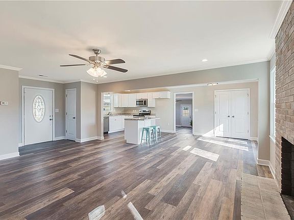 Situated on 1.3 acres this brick ranch has been brought back to life. It features: new roof, new gutters, new shutters, new HVAC, new moisture barrier under the house, new double hung insulated windows, and new flooring. Inside, you will find crown molding throughout the home as well as new lighting, smooth ceilings, open floor plan, laundry room, large bonus, and brick fireplace in the family room. The kitchen has been entirely remodeled with new cabinets, sink, new counter tops and stainless appliances. Three bedrooms and 2 bathrooms complete this better than new home. Very convenient location to Anderson or Greenville and Palmetto Schools. Outside you have a storage building with power that would make a fantastic workshop area! The lot is very deep and there is plenty of room for a pool if you want...really the possibilities are endless. If you are looking for a modern ranch style home with no HOA, 1.3 acres and USDA eligible, this is the home for you!