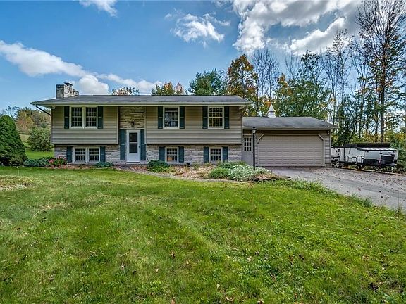 If you are looking for a move-in ready, private and secluded home, yet still close to amenities, this is the home for you. This well maintained 4 bedroom raised ranch is situated on over 1 acre, backs up to private wooded lot, and the current owner has lived here for over 40 years. The kitchen has been totally remodeled and features Cambria Quartz counters, Brookhaven Maple cabinets and a GE profile electric range. A large livingroom with gas fireplace, master bedroom with full bath, 2 other bedrooms and another full bath highlight the main floor. The finished lower level features a large family room with gas stove and barn beams giving it a cozy, rustic charm. There is also another bedroom, full bath, laundry room and workshop. All this only minutes from the village of Manlius!