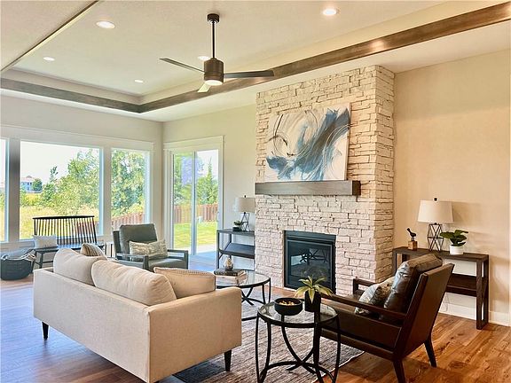 Gorgeous MOVE IN READY ranch with finished basement features main floor with 10’ ceilings and oversized custom windows! Great room features a beautiful coffered ceiling, fireplace with floor to ceiling stone and floating mantel and oversized windows displaying tons of natural lighting! Custom cabinets, an oversized island, gas cooktop with built-in GE stainless appliances and walk-in, corner pantry finish your chef’s kitchen off right! The main floor primary bedroom suite features tray ceiling, spa bath with spacious shower & dual vanities w/custom storage towers. The main floor laundry is located off the master walk-in closet for ultimate convenience! 2 additional bedrooms on Main Level plus 2nd full bathroom. Finished lower level has a spacious rec room with 9ft ceilings that is perfect for media/game room plus an additional bedroom and bath. Tons of storage space in the unfinished section of the basement! Enjoy sipping your morning coffee on your extended covered patio perfect for outdoor living and watching the sun set! Maintenance Provided Section is $155/month and includes weekly lawnmowing, yearly fertilizer program, annual grubworm treatment, spring re-mulch, annual general yard clean up and snow removal over 2". ***BUY WITH PEACE OF MIND, the convenience of new construction backed by a 2-10 Home Warranty, offering 10 year structural, 2 year mechanical, 1 year workmanship PLUS in house warranty representative!