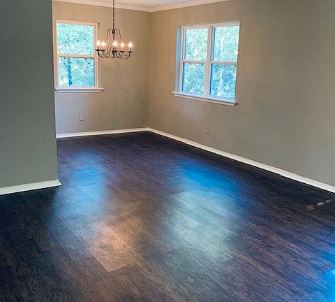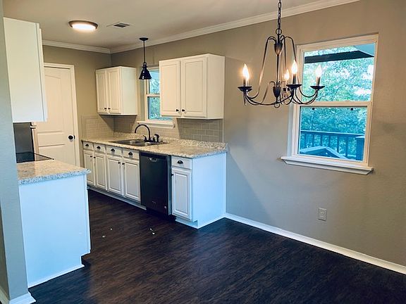4 bedroom 2 bath 1,152 sq ft home on almost 2 acres in quiet country setting just minutes from Walmart. Entire home has been remodeled and features vinyl plank flooring throughout and new carpet in the bedrooms, bathroom vanities with undermount sinks and marble surround, brand new stainless steel appliances, and all new doors, fixtures, and hardware. Large covered back deck with a beautiful view of the trees. Completely private, not a neighbor in site!