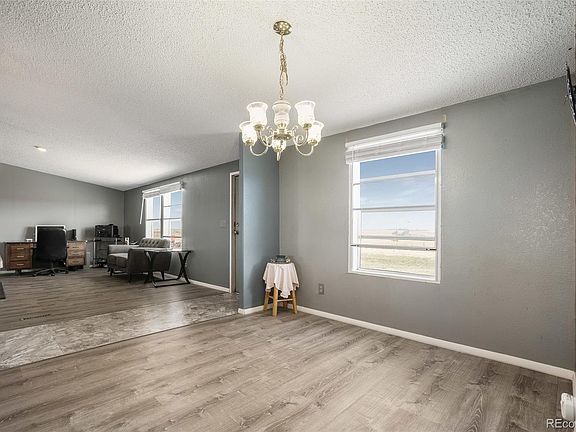 Welcome home to true country living on 35 scenic acres with 4 bedrooms and 2 baths! Interior features include eat in kitchen with new stainless steel dishwasher, microwave and stove. Newer interior paint, new window blinds throughout, vaulted ceilings, dining room, living room with beautiful double sided gas fireplace shared with the family room. Master bedroom has on suite bathroom boasting large jetted soaking tub. Walk in closets! New furnace and AC! 2 year old Septic System! All natural gas - no propane. 2 car carport! All 35 acres fenced with barbed wire. Smaller fenced area for kids and dogs. Don't miss the HUGE incredibly impressive 60 x 80 warehouse with concrete floors and electricity - all shelving included! Less than 30 minute drive to DIA, Southlands Mall and the Denver Metro Area. Bus stop for kids right on the corner. Come enjoy the peace, quiet and beauty this property has to offer!