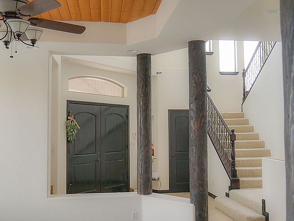 Quality custom move-in ready 4 bedroom 3 bath luxury living on half acre. Chef’s dream kitchen with top of the line stainless steel appliances, island sink, double convection oven and granite countertops. Master suite with three-way fireplace, jetted tub and private balcony that provides undisturbed views of the Sandia Mountains. First floor perfect for guest/office or in-law suite. Entertain with surround sound and covered patio with fireplace. Backyard access access through pass-through garage. Minutes to Rio Rancho City Center and UNM Sandoval Hospital. Schedule your showing today! Buyer's Agents welcome!
