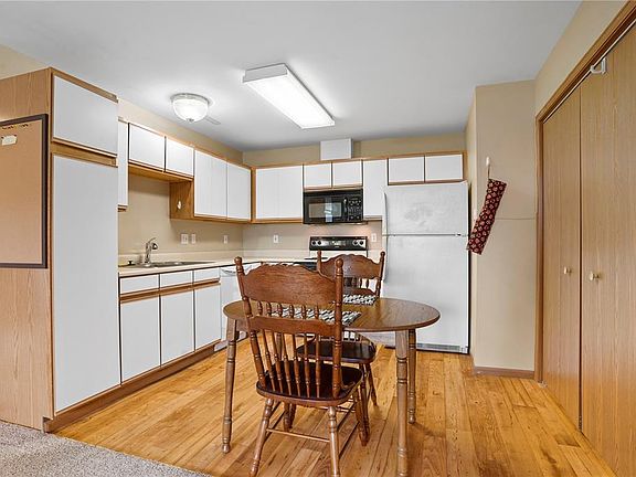 Main floor condo with garden view windows. Move in ready. Open living room, corner fireplace and eat-in kitchen with plenty of cabinets All appliances included. 1 car garage right outside entrance. Close to everything including schools, grocery, restaurants.