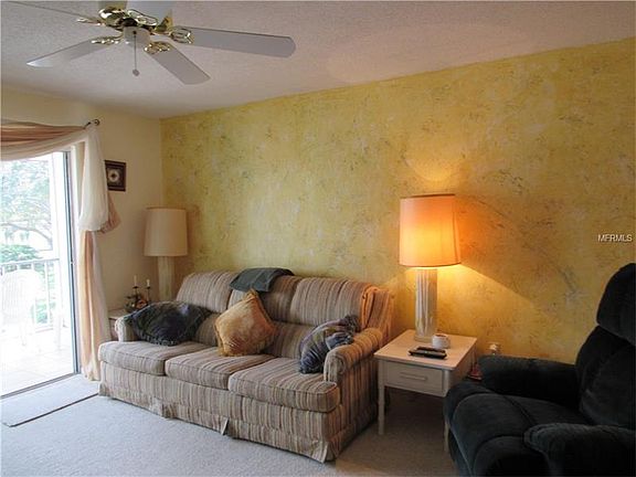 Located on the second floor with a view of the tennis courts and pool area. Being sold turnkey furnished. Porch faces east. Sliding glass doors from living and master bedroom to screened porch. New dishwasher plus nice range and refrigerator. All age section, no waiting on rentals. Trucks and pets allowed.