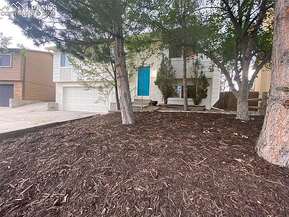 This charming home welcomes you with its mature trees, freshly painted exterior, and new deck overlooking its spacious backyward! With 3 bedrooms, 3 bath, and a finished 2 car garage - the layout is both unique and spacious. The kitchen opens into both the living room and onto the deck - excellent space for entertaining. All black GE Appliances, maple cabinetry, and an oversized breakfast bar that anchors the spaces. Breathtaking mountain views from the back deck. This Bi-level offers garage entrance on the lower level, spcious landry area, and additional bonus area with a wood burning fireplace. Easy commute to Ft. Carson, Peterson AFB, Schriever, Downtown Springs, and the Colorado Springs Airport.