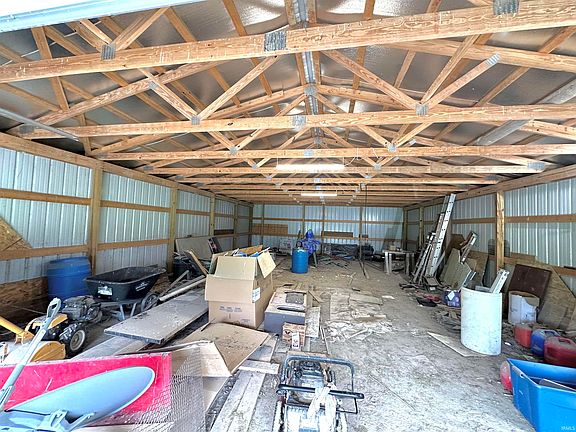 Discover the charm of farmhouse living on 2 1/2 acres with this spacious property. The house boasts ample room, featuring a large kitchen with an eat-in dining area, along with two expansive living spaces. Accommodations include four bedrooms and one bathroom, providing comfortable living space. You are going to love sipping a drink on the huge front porch…. with wide open field views. Priced competitively for potential updates, the farmhouse offers a unique opportunity to customize to modern tastes. Additionally, the property includes a substantial garage with an 18-foot door and essential tools for maintenance: wood stove accessories, wood storage barrel, crock of wood pellets (fire starter), axes and splitter tools, freezers, tiller, gardening tools, air compressor, assorted ladders, as well as wood and building materials including an extra-large ladder (Warner extension ladder) and assorted siding and roofing materials. There are beautiful fruit bearing trees and lovely flowers through the yard, making this property truly feel like a home.