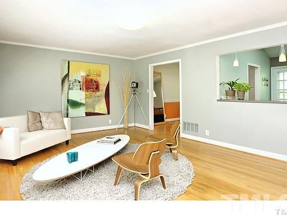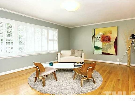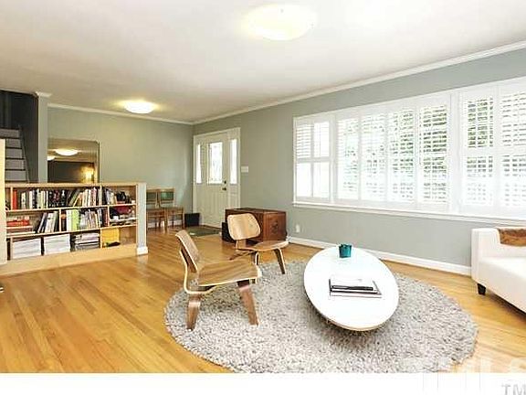 Architectural renovation of 4 bed, 2.5 bath home in Oak Park w/smart design & aesthetics. Kitchen features slate tile flr, Silestone counters, stainless appls & vent hood, recessed cans & pendant lights, glass tile back splash, modern cabs w/frosted drs & huge pullout pantry cab, brkfst bar open to liv. rm & skylights! Formal din. rm, open living & family rms w/oak hdwd flr. Remodeled baths, 2-car garage, laundry, huge fenced back yard, deck, storage, perfect location between Crabtree mall & Umstead park!
