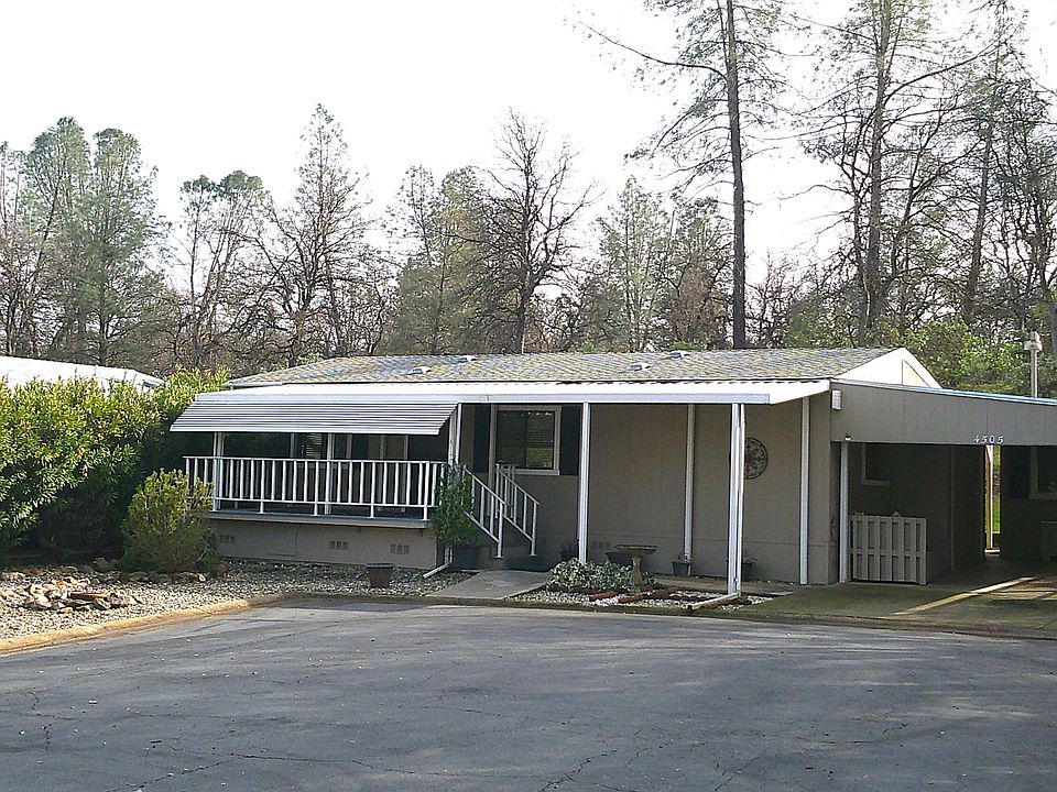 ''THE REDWOODS - a Five Star Senior Park'' A private secluded location at the end of a cul-de-sac with only one neighbor to the side, a greenbelt at the rear and side. Enjoy your morning coffee with a possible deer sighting. Just the right size. Two bedrooms and two full bathrooms. Washer, dryer, & refrigerator stay. Space rent includes water, sewer, & trash. Active clubhouse with pool, spa, pool tables, library, and much more. Financeable !!!