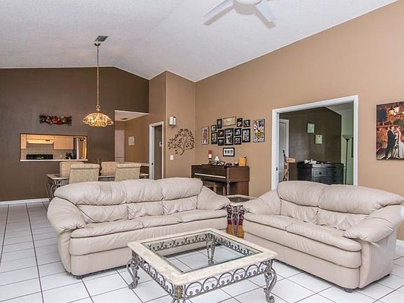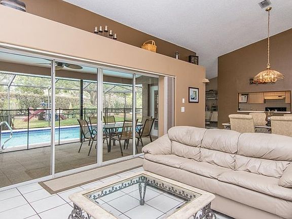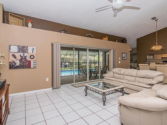 New Port Richey- This large 3 bedroom, 2 bath, 2 car garage pool home is located in the friendly neighborhood of Mill Pond Estates. The fresh looking exterior with low maintenance landscaping entices you to enter the serene interior. The foyer opens up to the living/dining room with volume ceilings, neutral colors and tile floors. The quadruple sliding doors open to expand the living space to include the outdoor living area. The master suite is spacious and the perfect place to get away from it all! Complete with walk-in closet and large private bath as well as a bonus room that could be used as a sitting room or office with French doors to the outdoor living area. The master bath has a large vanity with a sink and makeup seat, a garden tub and a separate shower both with custom tile. The two additional bedrooms are spacious, have large closets and share the hall bath. The kitchen is light and bright with an eat-in breakfast area and a pass-thru to the dining room. The breakfast area has French doors to the outdoor living area as well as a wall of windows overlooking the pool. The outdoor living/pool area has a large covered space and outdoor bar overlooking the large screened pool with spill over spa complete with a removable safety fence. Plenty of back yard space for family fun time. Community Recreation facilities include pool/spa and large rec hall with lots of activities to enjoy. Close to shopping, restaurants & entertainment. Come take a look...You'll like what you see!