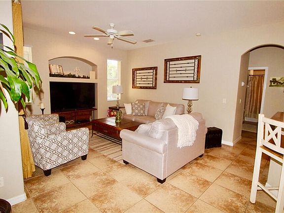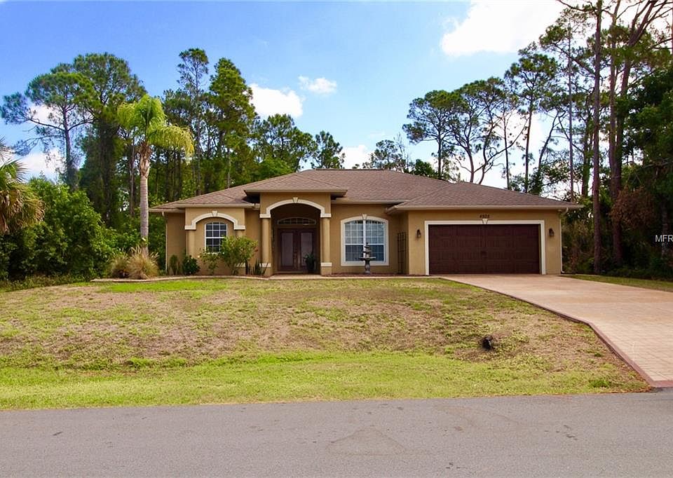Beautiful and modern this North Port home will delight you. From the moment you step through the front doors you feel the special care that the owners have taken with this home. Large family/kitchen combo looks out over the expanive lania and swimming pool. The outdoor area gives a feeling of privacy and paradise with a picture window screen enclosure, pavers and wooded surrounding. Sit outside in the mornings and enjoy your coffee while watching the sun come up. The nearly new 18 x 24 saltwalter heated pool with waterfall is extra large and crystal clear with fiber optic lighting and spraycrete surface. The master bedroom and bathroom are elegantly decorated and cozy. New tile flooring and paint throughout the house. Brand new appliances in the lovely kitchen. This home is move in ready. Also it is not in a flood zone and there are no deed restrictions. This home is located near golf courses and shopping centers but is on a private street in Playful City USA. Don't delay because this one wont last long.