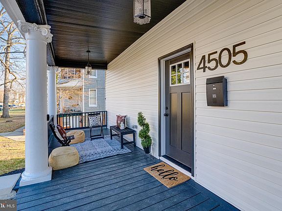 This stunning, newly renovated Gwynn Oak sanctuary boasts 5 bedrooms, 4 full bathrooms, and is LOADED WITH modern conveniences. The open concept on the main level is just the beginning of the thoughtful design and modern style throughout. The gourmet kitchen features a 10ft island with quartz countertops, ceramic backsplash, soft-close cabinets and drawers, and Samsung black stainless steel appliances. An electric fireplace adds warmth to the living room. The dining room is flooded with natural light and provides access to the rear, covered deck which overlooks the large backyard that includes a parking pad. Additionally, the main level offers a walk-in pantry, laundry room, and a full bathroom with custom ceramic tile tub surround. The upper level comprises of 3 bedrooms and 2 full bathrooms. The primary bedroom includes a walk-in closet and a fabulous en suite bath with a double vanity and custom tile shower. The lower level hosts a family room, the 4th and the 5th bedrooms, along with a shared luxurious bathroom.