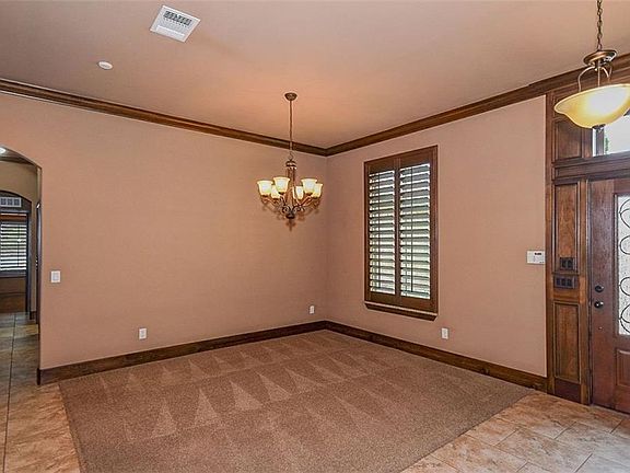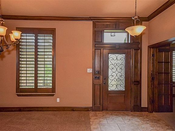Move in ready one owner custom home in Carrington Lakes. Immaculately cared for 4 year old home with upgrades galore and a water view. This 3 bed 2.5 bath features two dining areas a separate study and family/media room. The kitchen features stainless appliances and a center island. Stain matched plantation shutters are throughout. Granite adorns all counter surfaces and window sills. A large patio with a gas fire pit is partially covered by a custom pergola and overlooks a community pond. A two car garage is across from a single car garage with an above ground safe room. Carrington Lakes is a wonderful community with two pools, 2 clubhouses, multiple pavilions, walking trails, basketball, running track and more!