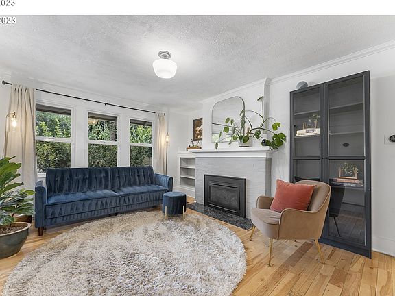 This exquisite Craftsman cottage beckons you to explore its unique charm. A picturesque front porch surrounded by plants extends a warm invitation to all who enter. Step inside the open living &dining room with a gas fireplace, tasteful built-ins, wood floors, and tons of light. This house brings all the charm of itsera with newer windows, new foundation, updated plumbing, upgraded electrical, newer furnace, central air andheating, hot water heater, and more! The renovated kitchen with quartz counter tops, backsplash and shelf, and newstainless steel appliances is perfect for entertaining. Smart features throughout with elegant lighting you can turn onor off from the other room or from across town! Venture downstairs to the partially finished basement brimmingwith potential. Cozy den with home theater setup, electric fireplace, bar, and egress window. This separate entrancespace is an ideal canvas for crafting an additional bedroom, ADU, or a convenient in-law suite. The oversized yard includes garden beds, shed, back deck and patio area, bountiful fruit trees, and abundant natural light providing amplespace for gardening and leisurely pursuits. Completing the package is a detached two-car garage, offering room forboth parking and storage. This home enjoys a prime location, just across from Senn's Dairy Park with community garden, grocery, restaurants, and more. [Home Energy Score = 4. HES Report at https://rpt.greenbuildingregistry.com/hes/OR10221886]
