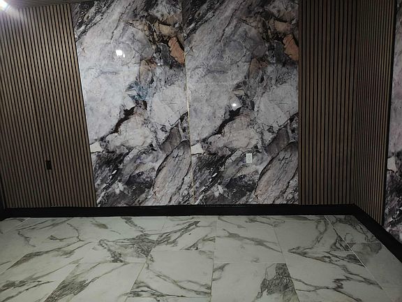Granite countertopsLuxurious wall panel decorTile floorsWalk in showerStainless steel appliances